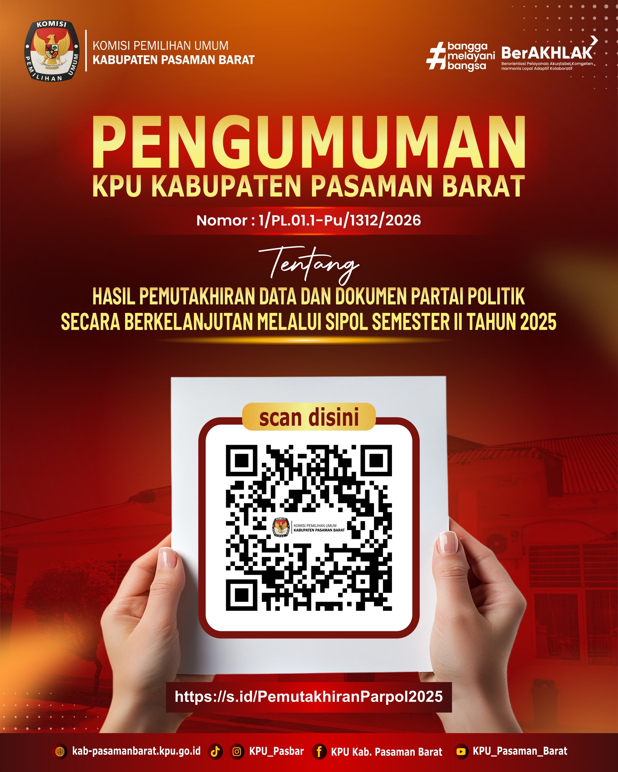 KPU Kabupaten Pasaman Barat telah menetapkan hasil pemutakhiran data dan dokumen partai politik melalui Sistem Informasi Partai Politik (Sipol) Semester II Tahun 2025.