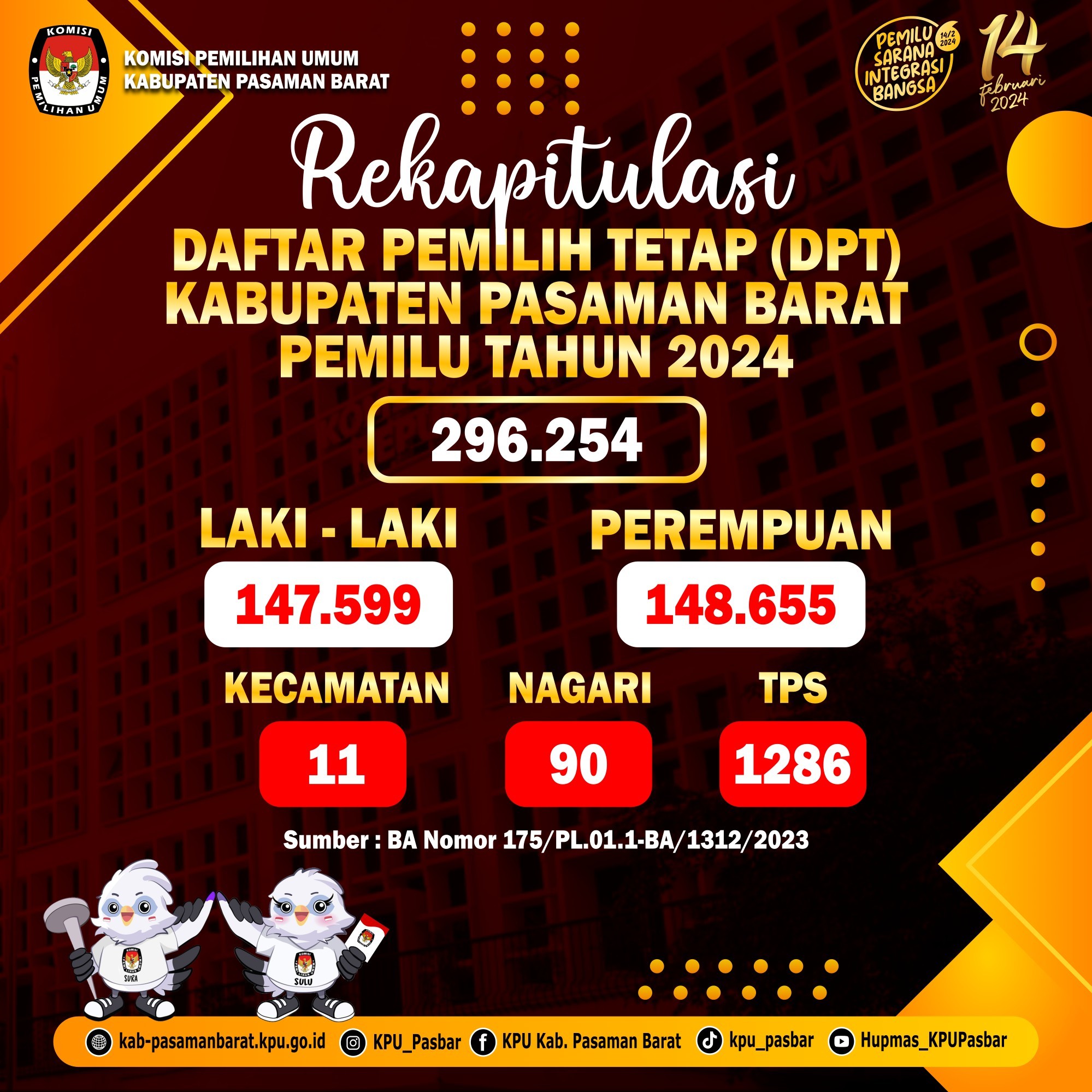 Daftar Data Pemilih Tetap (DPT) Kabupaten Pasaman Barat Tahun 2023 Untuk Pemilu Serentak Tahun 2024