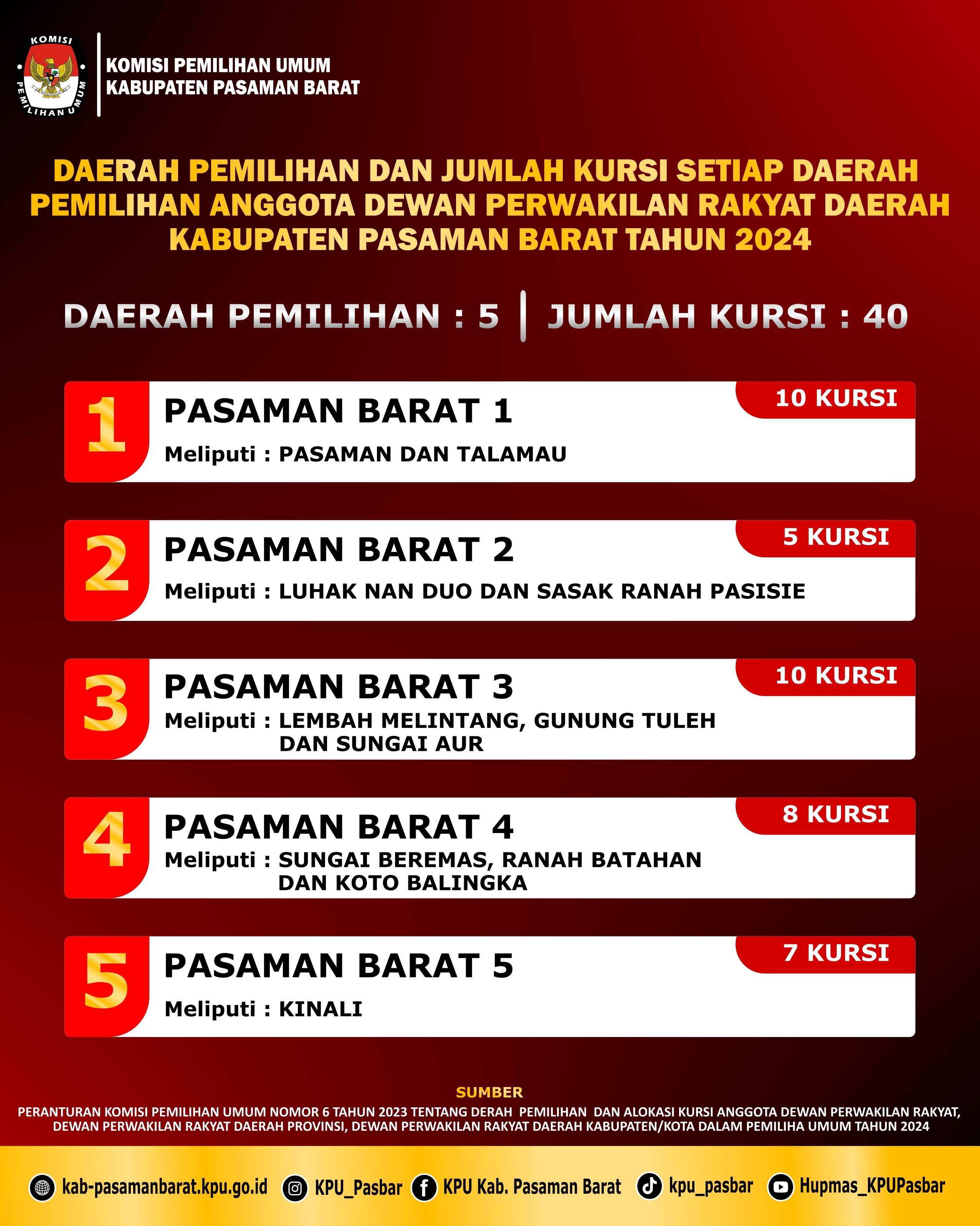 Dapil Pasaman Barat 5 meliputi Kec. Kinali dengan alokasi 7 Kursi.