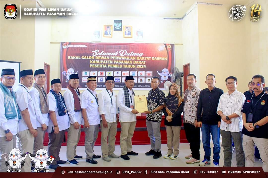 Rombongan partai diterima oleh Ketua KPU Kabupaten Pasaman Barat, Alharis dan Anggota Alfi Syahrin, Wanhar, Adri dan Misdarliah bersama Sekretaris KPU Kabupaten Pasaman Barat, Zaidi, didampingi Kasubbag Zamzami, Puput, Hidayat Basri, dan Yulia WN dan jajaran sekretariat serta disaksikan oleh Bawaslu Kabupaten Pasaman Barat.
