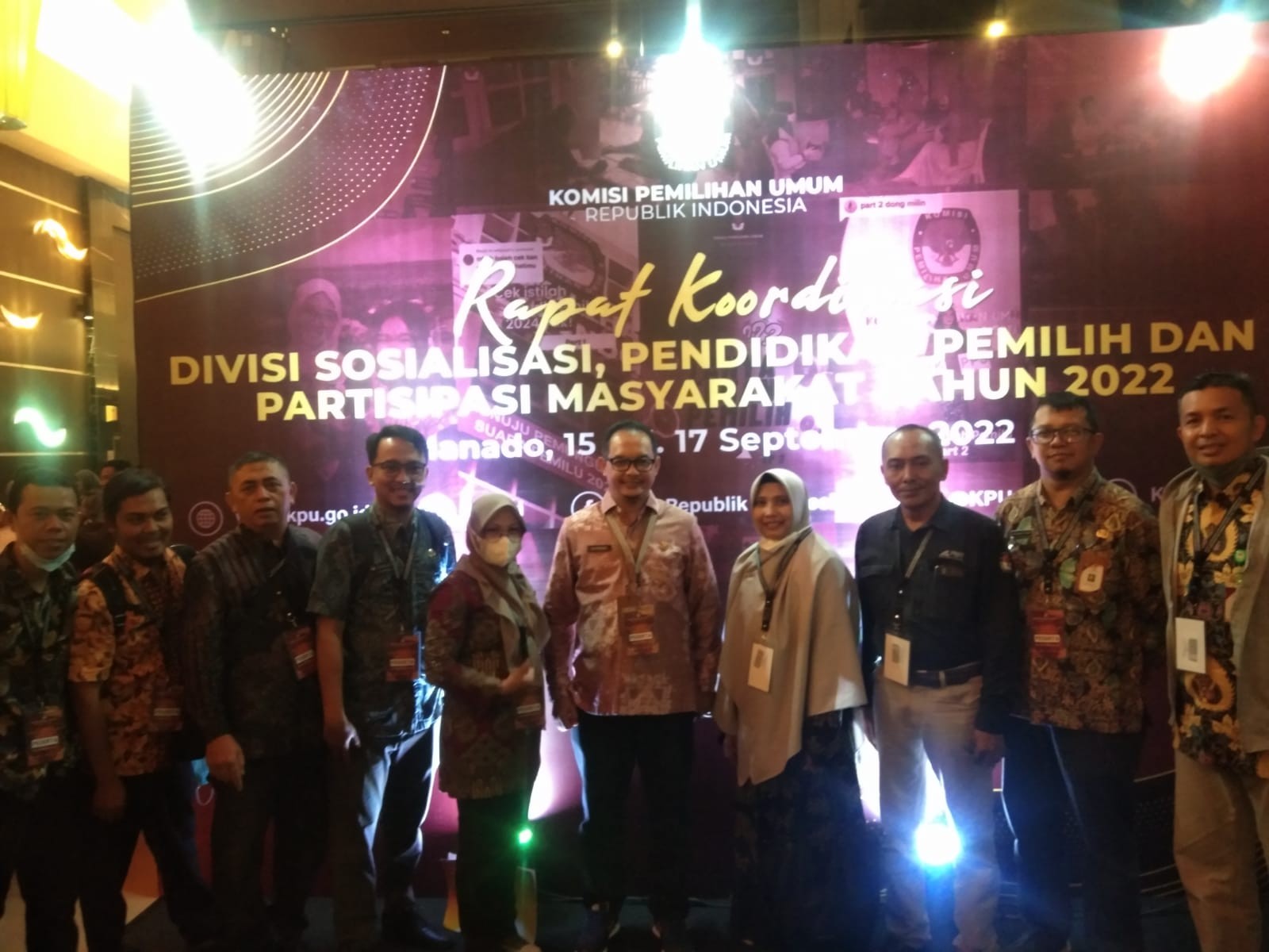 Simpang Empat, kab-pasamanbarat.kpu.go.id - Ketua Divisi Sosialisasi, Pendidikan Pemilih dan Partisipasi Masyarakat Misdarliah bersama dengan Kasubag Teknis Parhupmas KPU Kabupaten Pasaman Barat Zamzami mengikuti Rapat Koordinasi Divisi Sosialisasi, Pendidikan Pemilih dan Partisipasi Masyarakat Tahun 2022 seluruh Indonesia yang diadakan oleh KPU RI bertempat di Kota Manado, kegiatan berlangsung selama tiga hari pada tanggal 15 sampai 17 September 2022.