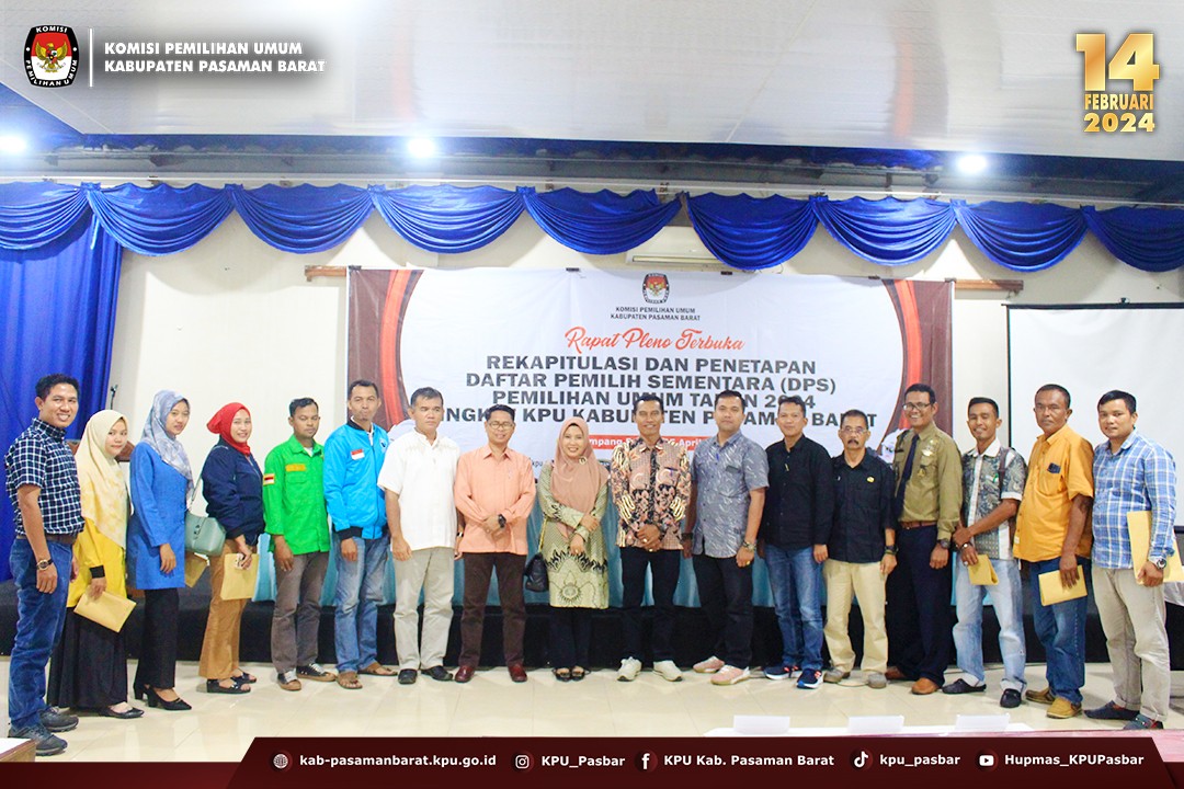 Dari hasil rapat pleno terbuka tersebut, KPU Kabupaten Pasaman Barat menetapkan Rekapitulasi Daftar Pemilih Sementara (DPS) dengan jumlah 299.460 pemilih dengan rincian 149.657 pemilih laki-laki dan 149.803 pemilih perempuan, yang tersebar di 11 kecamatan, 90 kelurahan/desa dan 1.280 TPS di Kabupaten Pasaman Barat.