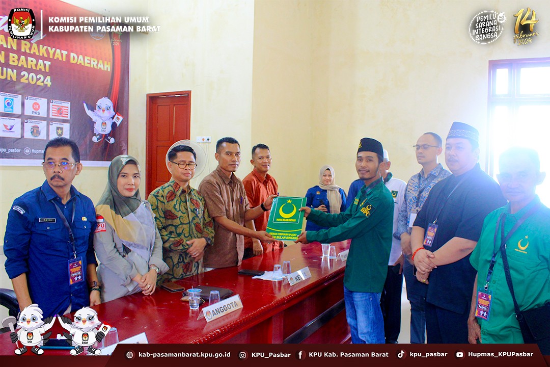 Diketahui, DPC Partai Bulan Bintang Kabupaten Pasaman Barat merupakan partai politik ke-6 yang mengajukan bakal calon setelah PKS, NasDem, PDI Perjuangan, PAN dan Ummat.
