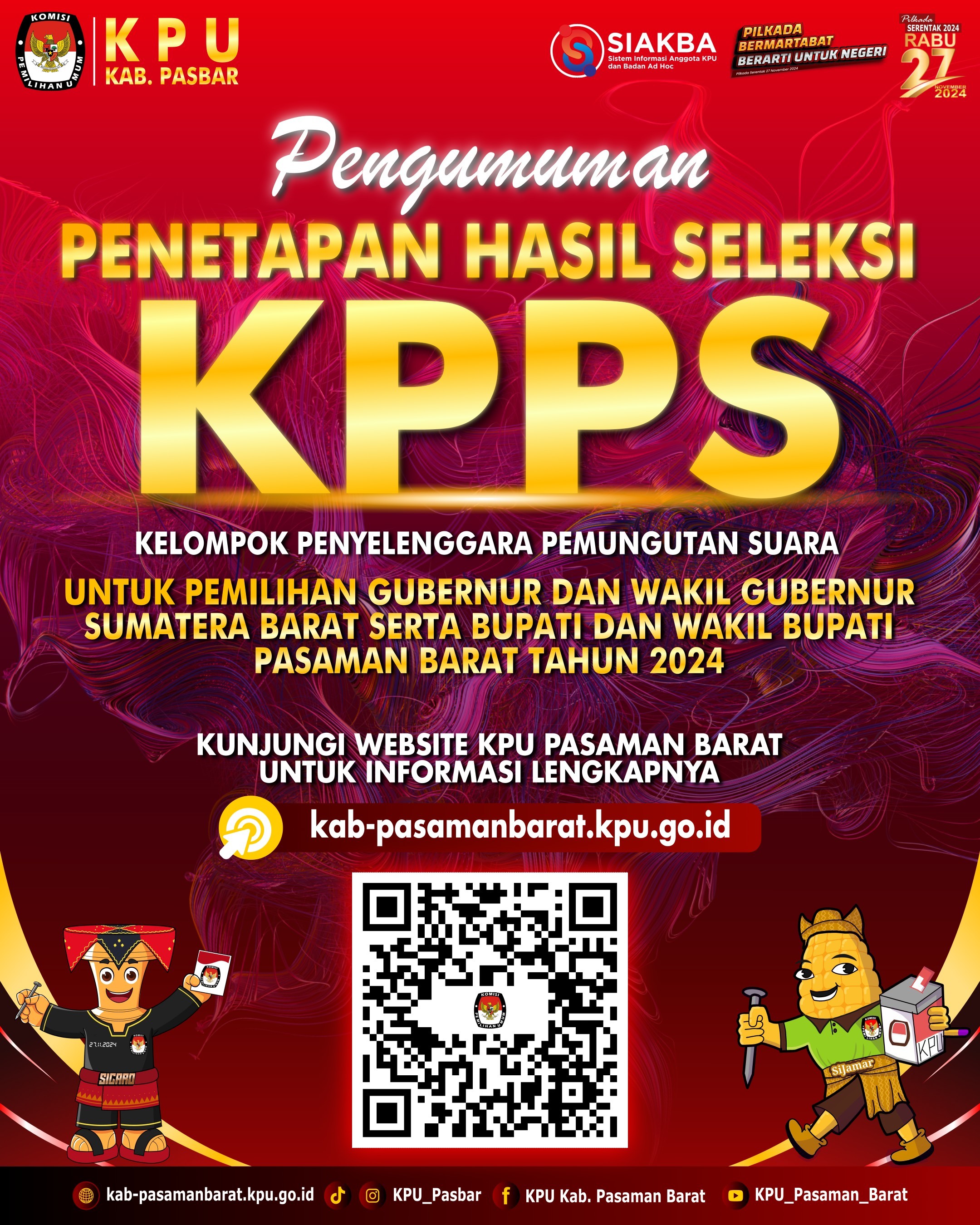 PENETAPAN HASIL SELEKSI CALON ANGGOTA KELOMPOK PENYELENGGARA PEMUNGUTAN SUARA SE- KABUPATEN PASAMAN BARAT UNTUK PILKADA TAHUN 2024