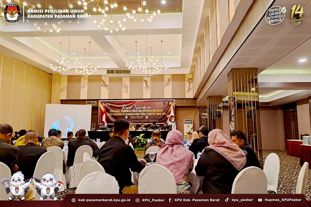 Simpang Empat, kab-pasamanbarat.kpu.go.id-KPU kabupaten Pasaman Barat menjadi salah satu peserta dalam acara rapat koordinasi yang diangkatkan KPU Provinsi Sumbar, Rabu dan Kamis tanggal 3-4 Mei 2023 di Hotel Pangeran Beach Padang.