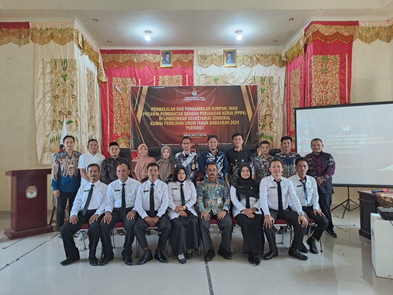 kab-pasamanbarat.kpu.go.id - Sebanyak tujuh orang Pegawai Pemerintah dengan Perjanjian Kerja (PPPK) dari KPU Kabupaten Pasaman Barat mengikuti kegiatan Pembekalan dan Pengambilan Sumpah/Janji PPPK di lingkungan Sekretariat Jenderal Komisi Pemilihan Umum (KPU) Republik Indonesia Tahun Anggaran 2024 Periode I. Kegiatan ini dilaksanakan secara daring melalui Zoom Meeting pada Jumat, 23 Mei 2025.