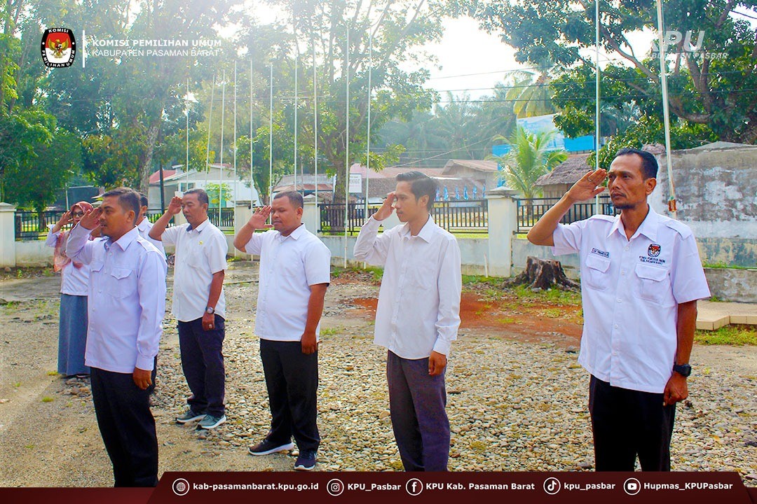 Anggota KPU Kabupaten Pasaman Barat, Wanhar menyampaikan pesan pada saat apel pagi, senin (3/10) yang berkaitan dengan kesiapan seluruh personil KPU Pasaman Barat dalam menghadapi tahapan Pemilu Serentak Tahun 2024.